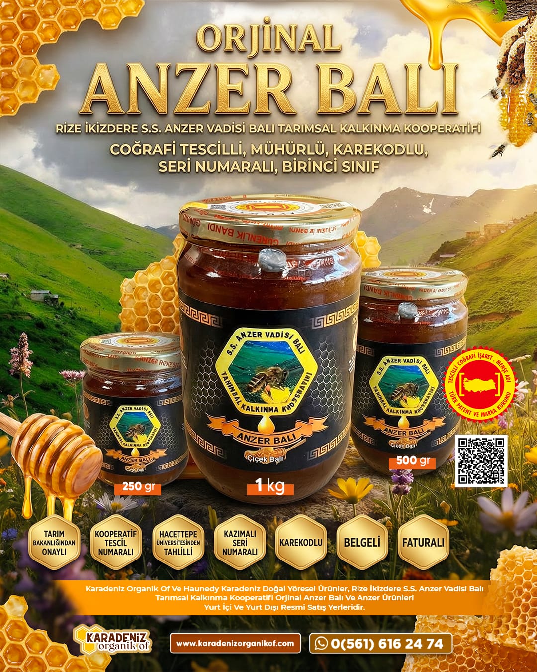 Anzer Vadisi Balı Tarımsal Kalkınma Kooperatifi Başkanı Murat Gür burada yaptığı açıklamada; “Kooperatifimizin anzer balları, coğrafi tescilli, mühürlü, kazımalı seri numaralı, karekodlu, Hacettepe Üniversitesi’nden tahlilli, barkodlu, Kooperatif tescil numaralı, Tarım Bakanlığımızca onaylı ballardır. Bilimsel olarak da üniversitelerimizde kürsüleri ve araştırma enstitüleri bulunan, dünyanın en iyi en şifa balı Coğrafi Tescilli Mühürlü Anzer ballarımız, 1 kg, (970 gr.) , 500 gr ve 250 gramlık olarak, Trabzon Sürmene Yeniay’da bulunan Haunedy Karadeniz Yöresel Ürünler Mağazasında satılmaktadır.